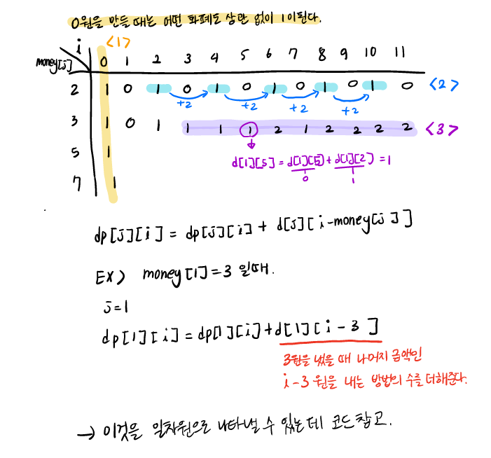 d[i] += d[i-money[j]] % 1000000007; //<3>