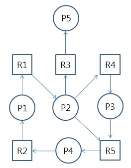 - 자원 Rj -> 프로세스 Pi : 자원 R이 프로세스 P에 할당된 것을 의미한다.