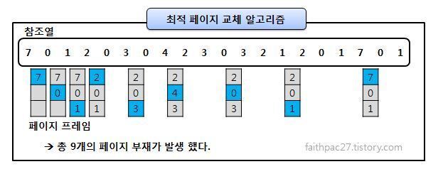 - 페이지 부재율이 가장 낮은 효율적인 알고리즘이다.