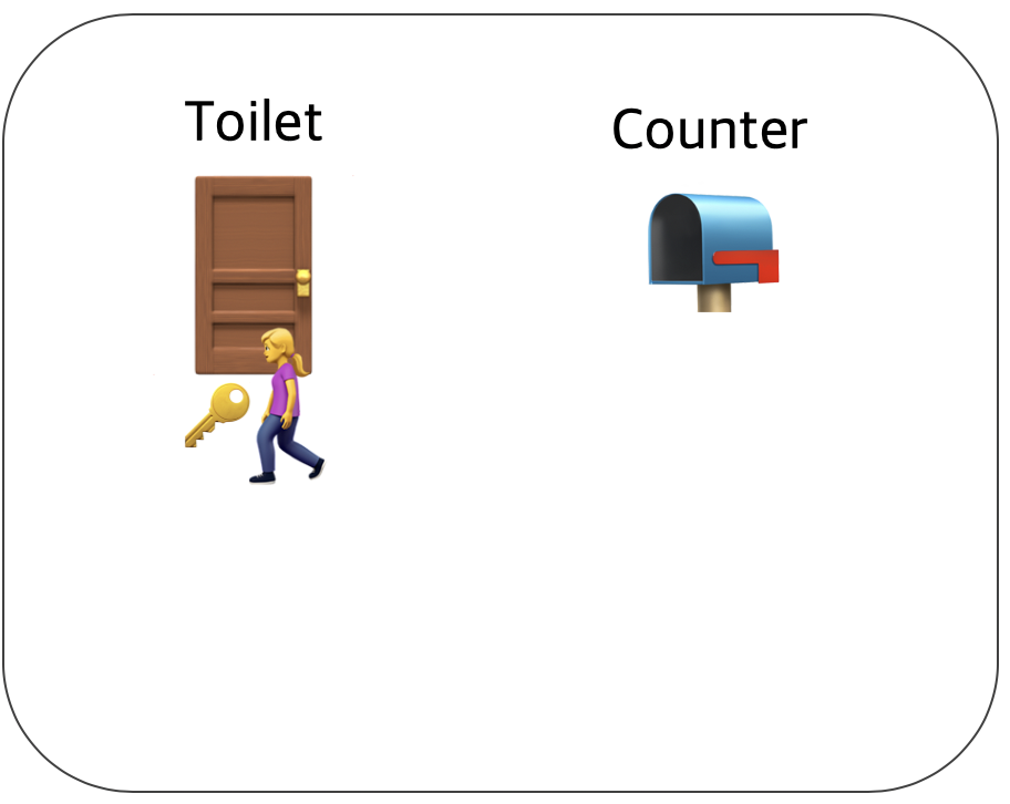 당신이 화장실을 가려고 하는데 카운터에 키가 있으면 화장실에 사람이 없다는 뜻이고 당신은 그 열쇠를 이용해 화장실에 들어갈 수 있다.